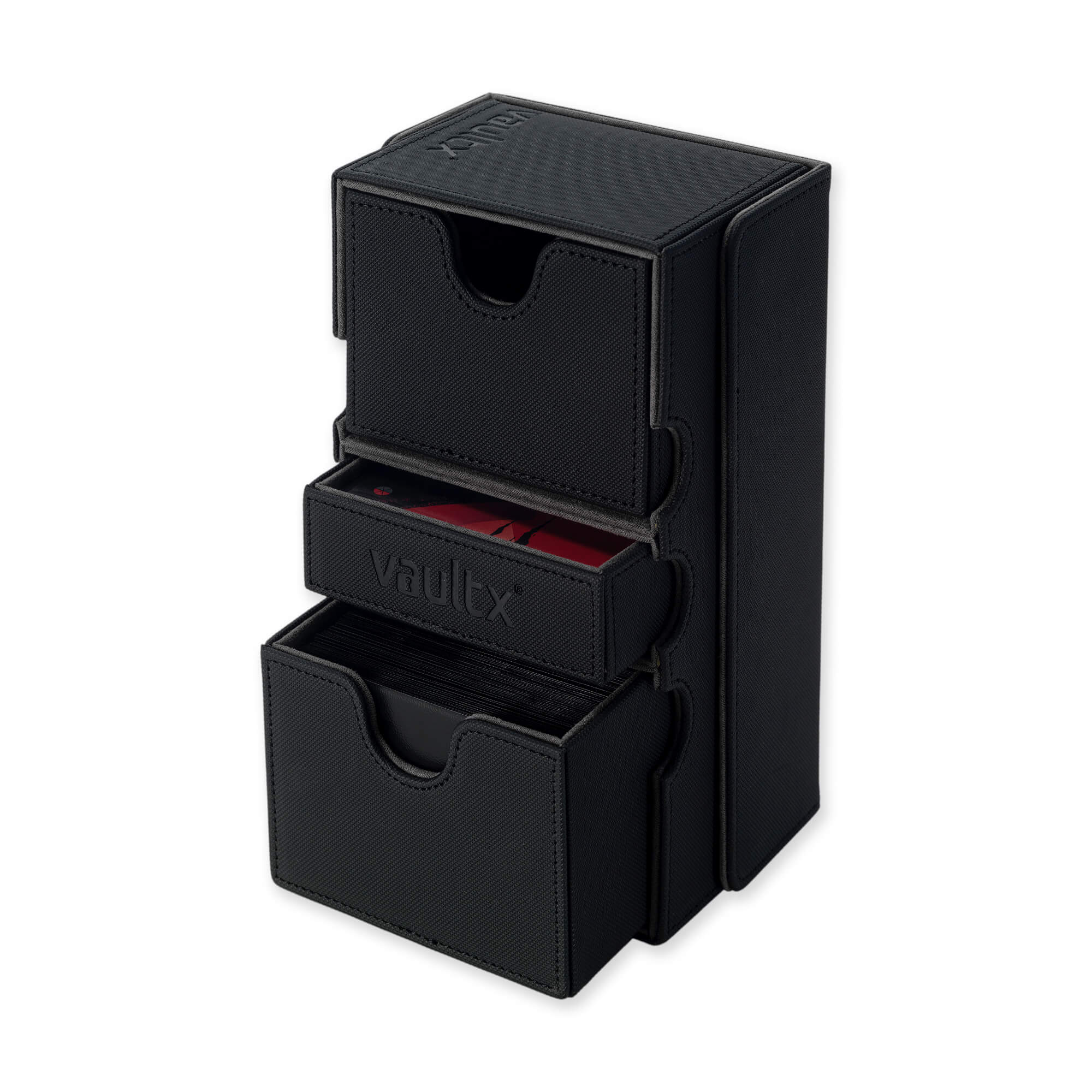 The Vault X Exo-Tec® Game Box 100+ is crafted with durable, water-resistant Exo-Tec® material and a soft microfiber lining, to keep your cards safe. A 100+ capacity deck drawer and versatile accessories tray makes this box the ultimate tournament companion.